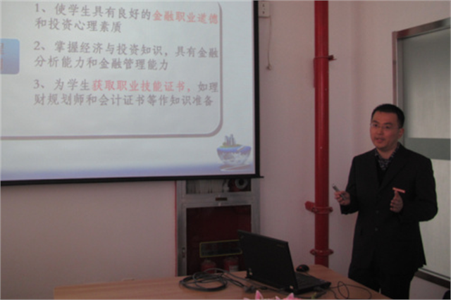 经管系华荷锋老师进行说课专家组副组长王毅认真听取说课王毅院长与教师进行交流11月26日上午,评估专家组副组长王毅院长在经济贸易管理系实训楼1404室听取了经管系教师华荷锋博士关于《个人理财规划》课程的说课。我院副院长瞿立新、经管系主要负责人及教师代表旁听了说课。