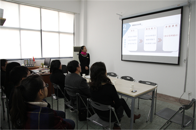 贾佳老师进行《办公空间设计》课程说课说课现场左健民院长与艺术系教师进行交谈11月25下午,评估专家组组长左健民在艺术设计系会议室听取了艺术系贾佳老师的《办公空间设计》课程说课。艺术系主要负责人及教师代表旁听了说课。