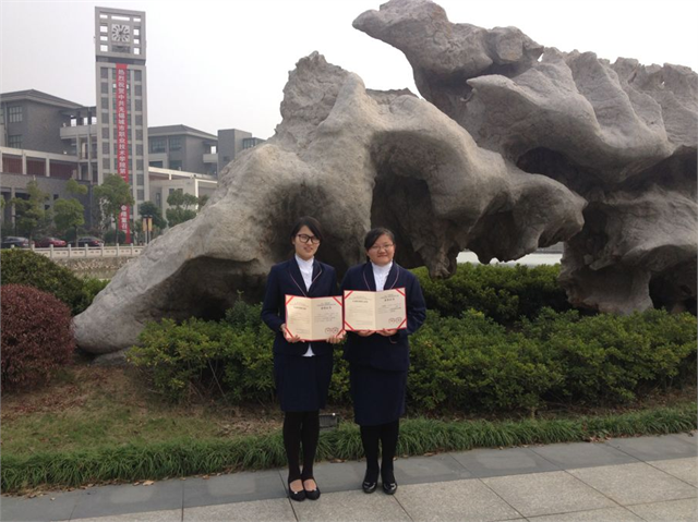 获奖学生合影11月1日至2日,由江苏省高等学校外语教学研究会和外语教学与研究出版社举办的“外研社杯” 江苏省高职高专院校英语演讲大赛在江苏城市职业学院举行,共有来自全省54所高职院校的106名学生参加了本次比赛。经过激烈的角逐,我院旅游系酒管(国际)1201班徐月和武宜美两位同学发挥出色,双双获得三等奖。王晓峰和蔡海霞两位老师荣获优秀指导教师奖。