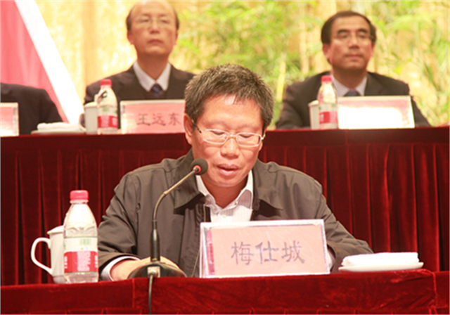 |  | | 省委组织部干部五处处长梅仕城同志代表省委组织部宣读贺词 |