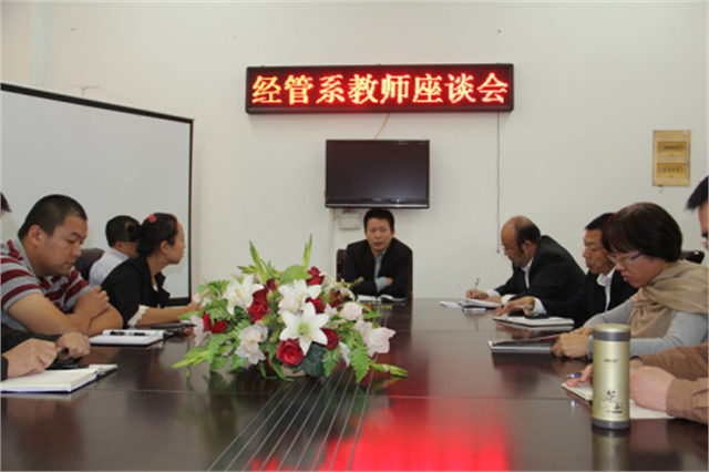 座谈会现场10月23日下午,经济贸易管理系在2教楼204会议室召开了系部座谈会,院党委书记高建宁书记出席会议。座谈会由系主任鲁继业主持。