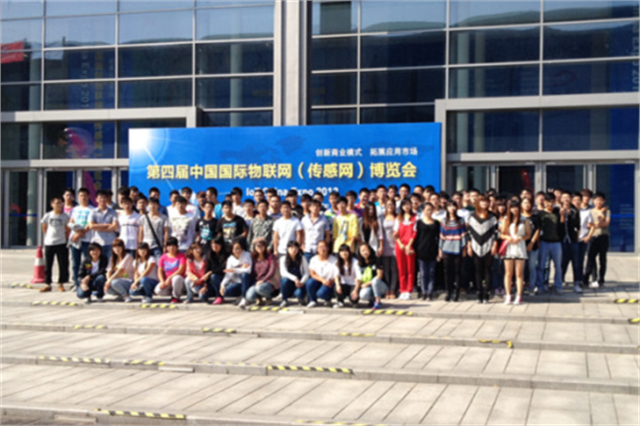 参加物联网博览会学生合影9月26日上午,“第四届中国国际物联网博览会”在太湖博览中心举行,电信系党总支组织11级、12级一百多名师生前往参观。