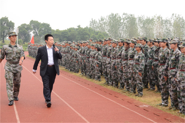|  | | 高建宁书记在军训团团长的陪同下检阅了受训学生方阵 |