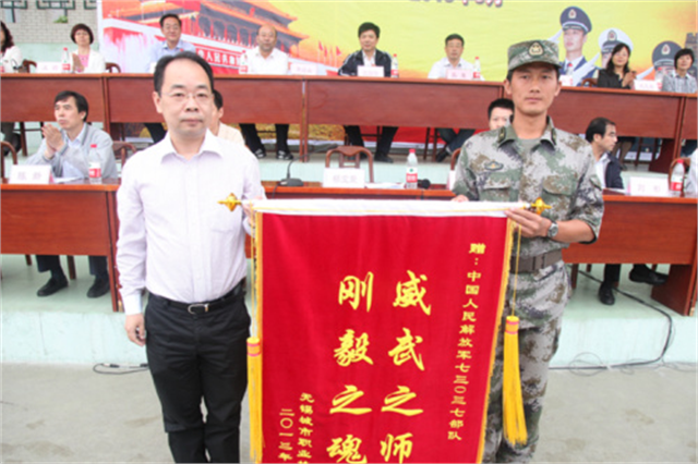 |  | | 郁宝荣院长向承训部队赠送锦旗 |