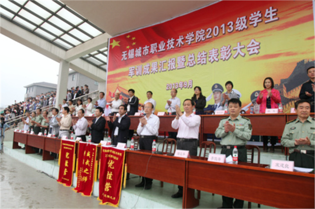 9月28日下午,我院2013级新生军训成果汇报暨总结表彰大会在学院体育场隆重举行。院党政领导高建宁、郁宝荣、刘彬、瞿立新、王远东、陈新及老领导邹亚平以及各系部处室负责同志、承训部队全体教官、院军训团全体成员、2011级、2012级学生和全体教职工参加了大会。惠山区人武部李俊涛部长应邀出席。邹亚平同志主持大会。 |