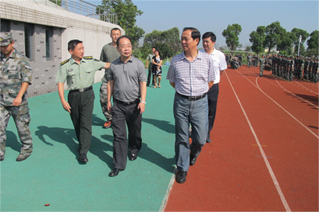 院长郁宝荣、副院长邹亚平等领导亲切慰问2013级军训新生着迷彩,他们英姿飒爽;踢正步,他们意气风发;唱军歌,他们斗志昂扬!截止今日(9月16日),已是我院2013级新生军训第四天。上午9:10分,院长郁宝荣、副院长邹亚平等领导亲自来到训练场慰问在训教官和新生。