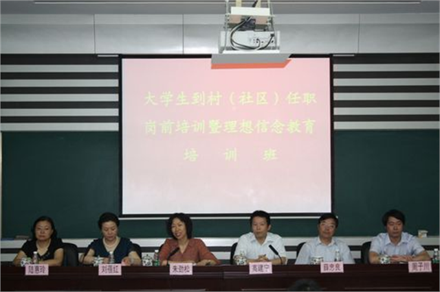无锡市2013年大学生到村(社区)任职岗前培训班在我院举行培训班现场8月7日上午,无锡市2013年大学生到村(社区)任职岗前培训暨理想信念教育培训班在我院举行了开班典礼。市委常委、组织部部长朱劲松,市委组织部副部长刘蓓红,市人保局调研员薛忠良,市体育局局长陆惠玲,团市委书记周子川以及我院党委书记高建宁出席会议。会议由刘蓓红同志主持。