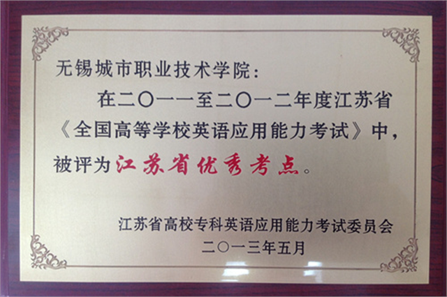 我院荣获“江苏省高校英语应用能力考试优秀考点”称号日前,省高校专科英语应用能力考试委员会公布了2011-2012年度江苏省全国高等学校英语应用能力考试考点综合评比结果,我院被评为江苏省优秀考点,教务处束瑜被评为优秀考务管理工作者。