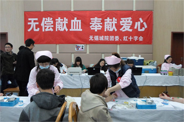 献血活动现场为提升团员精神面貌,更好地弘扬乐于奉献、关爱他人的雷锋精神,3月14日下午,我院在图文信息中心举行了一场无偿献血活动,来自各系的近200名团员和青年老师参加了活动。