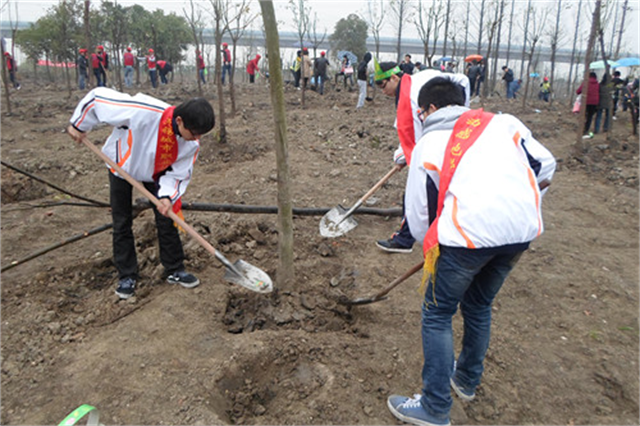 我院志愿者参加植树活动同学们亲手种下树苗3月16日下午,我院20名学生志愿者参与了无锡市园林绿化委员会举办的义务植树活动。