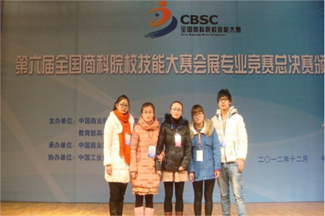 参赛师生合影11月29日至12月2日,2012年第六届全国商科院校技能大赛会展专业竞赛总决赛在北京举行。本次大赛由中国商业联合会、中国会展经济研究会和教育部高等学校高职高专旅游管理类专业教学指导委员会联合举办。我院旅游系会展策划与管理专业2011级华威、徐雪芹、王燕和施慧敏四名同学在张岩岩、杨婕老师的带领下参加了比赛并提交了《足尖上的幸福——首届中国(无锡)鞋文化博览会》的策划方案。经过激烈的角逐,我院代表队最终取得了三等奖的好成绩。杨婕老师在会展专业竞赛(教师组)说课比赛中荣获二等奖。