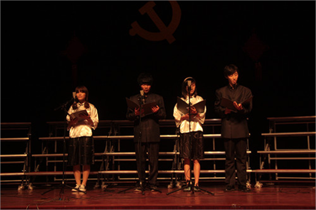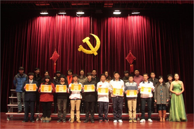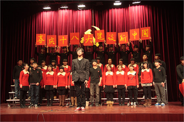 比赛现场同学们唱响心声,献礼十八大诗朗诵《祖国》嘉宾、评委与获奖班级合影留念12月6日晚,我院艺术设计系“党在我心中”班歌合唱比赛在图文信息大报告厅圆满举行。艺术设计系副主任江文、党总支副书记陈霞出席活动现场。