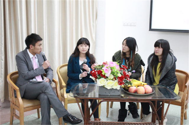 现场访谈讲述青春故事为充分展示旅游学子的青春风采,引导和帮助2012级学生树立正确的人生观、世界观,11月26日晚,我院旅游系举办了“我身边的青春榜样”大学生成长故事报告会,旅游系2012年度“学习之星”王艳之、“礼仪之星”梅似雪、“文艺之星”刘洋、吕岚、沈娅、“服务之星”冯小兵、“创业之星”朱宝乐与2012级200余名同学共同分享了他们的成长体验与奋斗历程。