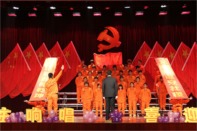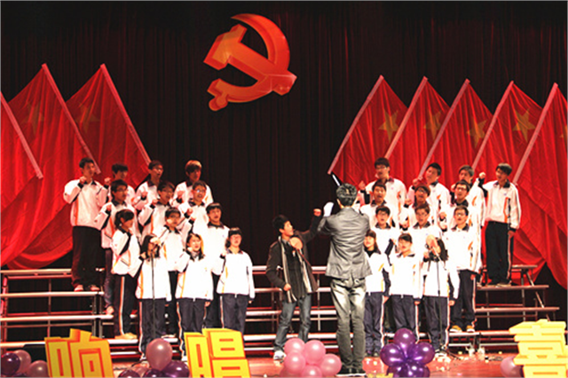 道桥1201班全体同学演唱《我的中国心》建工1201班全体同学演唱《中国人》园林1201班获得合唱比赛一等奖学生举起“国施善政振乾坤,党定良谋安社稷”的横幅为庆祝党的十八大胜利召开,11月28日,由我院建筑工程系举办的 “唱响主旋律,献礼十八大”合唱比赛在体育馆隆重上演。建工系党总支书记汤宇红、副主任陈炜与广大师生一同观看了精彩的表演。