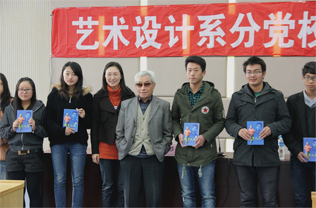 弓峰老先生来院讲授特殊党课弓老为艺术系学生签名赠书并合影留念11月14日下午,艺术设计系党总支特邀被媒体誉为“当代徐霞客,跑遍神州第一人”的弓峰老先生,在图文信息小报告厅为艺术系师生讲授了一堂精彩、生动而又深刻的特殊党课。系党总支副书记陈霞、辅导员和学生入党积极分子共同聆听了本次党课。