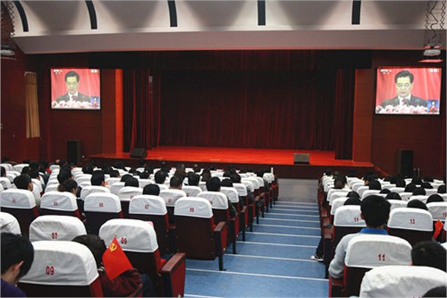 我院师生集中收看十八大开幕盛况师生代表认真聆听总书记报告11月8日,举世瞩目的中国共产党第十八次全国代表大会在北京隆重开幕。上午9时,我院组织师生在图文信息中心大报告厅集中收看了大会盛况。院党政领导高国强、周伟灿、刘彬、邹亚平、瞿立新,全体机关干部,教师和学生代表近500人汇聚一堂,认真聆听了胡锦涛总书记代表第十七届中央委员会所作的题为《坚定不移沿着中国特色社会主义道路前进 为全面建成小康社会而奋斗》的报告。