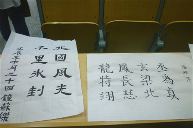 参赛现场选手作品为弘扬中国民族的传统文化,展现书法的独特魅力,丰富同学们的课余文化生活, 10月24日,我院建筑工程系在阶梯教室421举办了一场校园书法大赛。