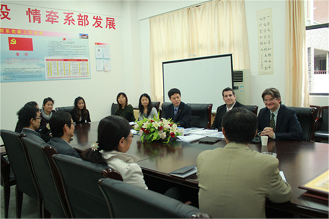 英国伦敦城市行业协会外审官员来访我院外审官员走进课堂与我院学生进行了互动交流专项答辩会现场10月25日,英国伦敦城市行业协会(City &Guilds)的外审官员Stephen Holly先生和William Fultcher先生来访我院,对在我院建立英国伦敦城市行业协会中国无锡考试中心依照程序规定进行了外审。