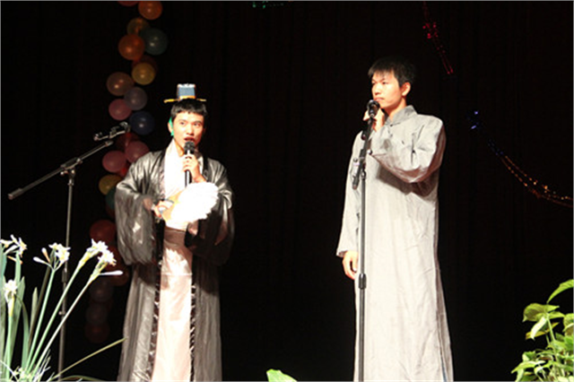 相声《孔明游记》心理剧《方向》学长与新生一同分享大学学习、生活经验院党委书记高国强同志精彩演唱9月26日晚,我院图文信息中心大报告厅内掌声雷动、笑声不断,建工系迎新交流联谊会在此举行。院党委书记高国强、建工系党总支书记汤宇红、军训教官以及建工系师生参加了本次联谊。