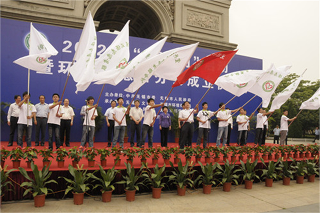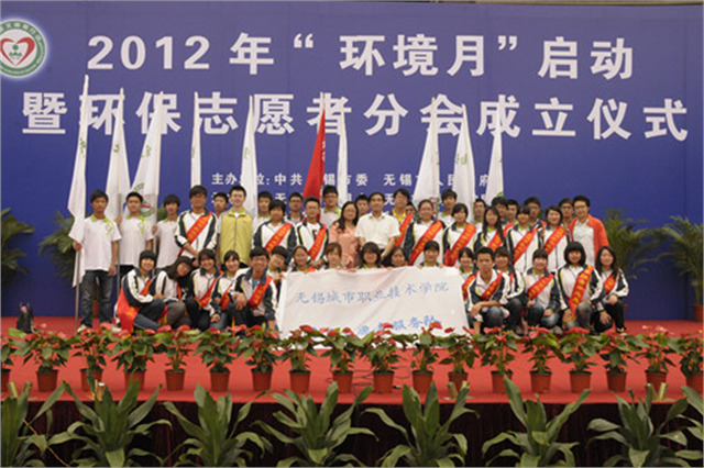 我院师生参加2012年无锡市“环境月”启动仪式我院环保学生代表挥动环保宣传旗我院志愿者宣读环保志愿倡议书6月1日,2012年无锡市“环境月”启动暨市环保志愿者分会成立仪式在蠡湖中央公园举行。省委常委、市委书记、市志愿者总会名誉会长黄莉新同志宣布2012年无锡市“环境月”正式启动,我院党委副书记刘彬、团委书记夏心怡及40多名师生代表参加了启动仪式。