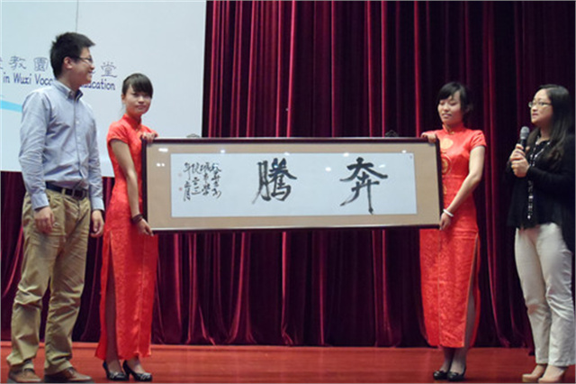 无锡大学生创业联盟主席、麦梯时尚创意设计公司经理马腾与师生们分享自己的创业感悟师生认真聆听讲座院团委书记夏心怡代表学校将“奔腾”的牌匾送给马总5月30日,我院在图文信息中心报告厅成功举办职教园大讲堂活动,无锡大学生创业联盟主席、麦梯时尚创意设计有限公司经理马腾受邀作了《创业,创造你的事业》精彩讲座,来自职教园7所院校的四百余名师生聆听了讲座。