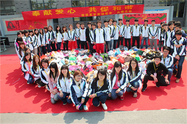 我院旅游系开展“春晖”助学支边行动同学们纷纷捐款捐物整理打包衣物发往西南旱区当地村委分发捐赠物资当地村委发来感谢信近日,两封饱含深情的感谢信和照片分别从云南省陆良县召夸镇果河村和水塘村寄到了我院旅游系领导的手中。村民在信中表示,由我院旅游系捐赠的款物已全部分发到村民手中,他们感激的说:“贵校不愧为爱心之校,贵校师生不愧为新时期的活雷锋,我们要教育孩子们好好学习,用优异的成绩感谢和报答贵校对我们的大力支持和帮助。”