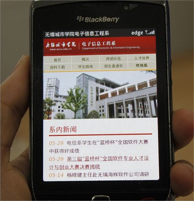 电信系“手机版”网站界面展示为进一步优化校园网络环境,加强网站宣传力度,提升院系信息化建设水平,近日,我院电子信息工程系对官方网站进行了全面升级改版,并率全院之先推出“手机版”网站。学院院长周伟灿教授充分肯定电信系网站改版工作对推动我院信息化校园建设做出的成功探索,同时,把我院的网络宣传工作推向了一个更高的台阶。