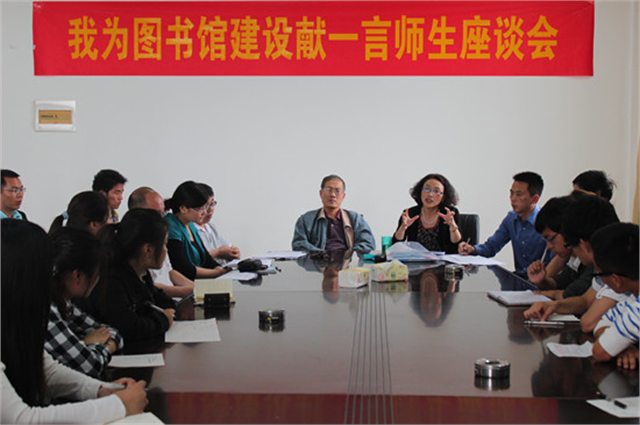 座谈会现场师生踊跃发言同学们积极为图书建设建言献策为进一步提升我院图书馆建设水平,更好地服务校园文化建设和师生科研、学习,5月23日下午,图书馆联合院团委、旅游系在图文信息中心举行了“我为图书馆建设献一言”师生座谈会。图书馆副馆长杨帆、朱朝胜,相关部门负责人与各系部读者代表三十余人参加了座谈。