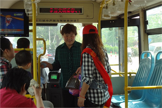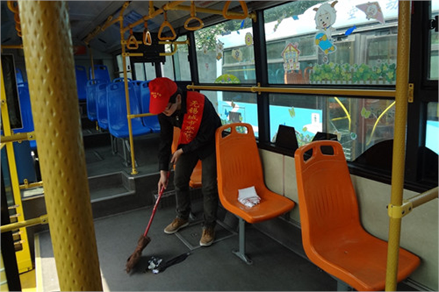 学生志愿者积极引导乘客乘车学生志愿者主动清扫公交车车厢电信系学生党员志愿者合影5月6日,我院电子信息工程系的十多名2010级学生党员志愿者走进河埒口公交车调度站,与北塘区团委联合开展以“益暖公益,与爱同行”为主题的“爱心公交”微公益实践活动。