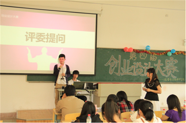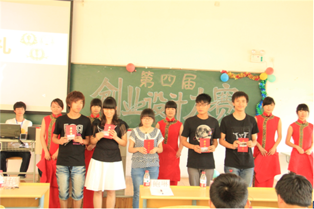 比赛现场获奖代表队5月16日下午,我院第四届创业设计大赛落下帷幕。经过激烈的角逐,由经管系五名学生组成的网售蔬菜水果公司创业团队从八支代表队中脱颖而出,取得了冠军。
