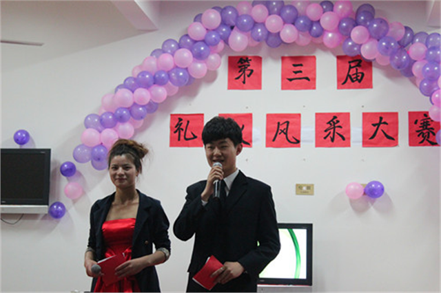 我院旅游系举办第三届礼仪风采大赛餐饮礼仪展示选手风采展示礼仪知识现场问答为检阅我院开展大学生文明修身工程以来取得的阶段性成果,展现同学们良好的礼仪技能和文明修养,进一步推动校园礼仪文化的普及和推广,5月9日晚,由院团委主办,旅游系承办的无锡城市学院第三届“礼仪风采大赛”在2号实训楼举行。