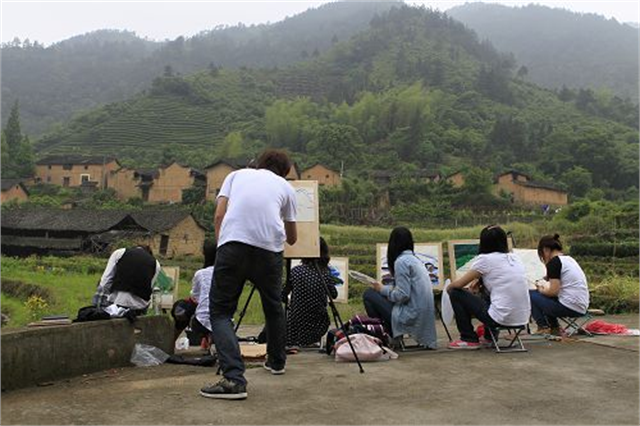 参加写生的师生合影教师对学生进行指导学生进行写生5月6日至13日,我院艺术设计系2011级广告设计与制作、动漫设计与制作(数码艺术)专业的125位学生在专业教师的带领下,前往浙南古村落开展为期八天的写生教学实践活动。浙南古村落文化历史悠久,民居建筑风格多样,是明清至民国时期的古村民居保存较好的古村落之一,具有较高的艺术鉴赏价值。
