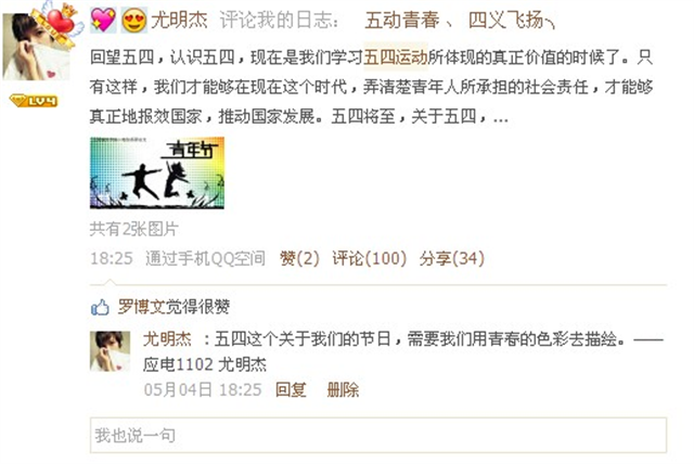 爱国日志主题爱国教育邮件转发电信系学生积极评论爱国日志为纪念共青团成立90周年,加强青年学生思想道德教育,进一步推进团学工作新媒体阵地建设,5月4日,我院电子信息工程系通过互联网开展“五动青春,四义飞扬”五四青年节主题活动。