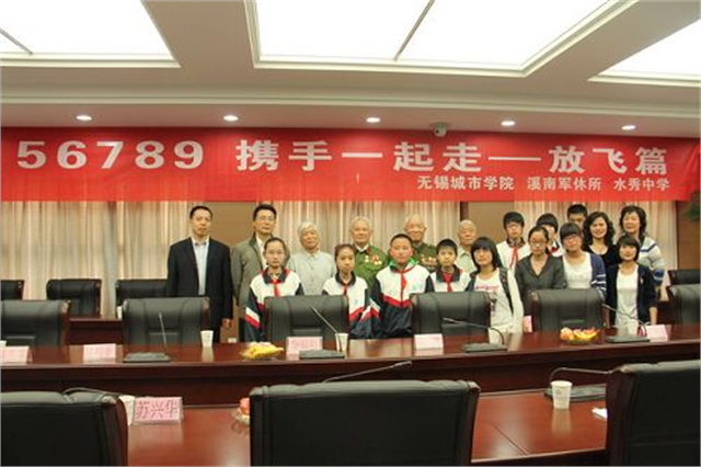 溪南军休所老干部和水秀中学学生来我院参观院党委副书记刘彬致欢迎辞军休老干部对我院学生进行捐助5月2日下午,我院经济贸易管理系迎来了一批特殊的客人。溪南军休所徐所长带着4位80岁高龄的军休老人、水秀中学时书记带着7名年轻活泼的初中生参观了我院经管系实训室、院图书馆、体育馆,并走进宿舍和教室,他们被我院优美的校园环境深深吸引,充分体验了大学的学习和生活。