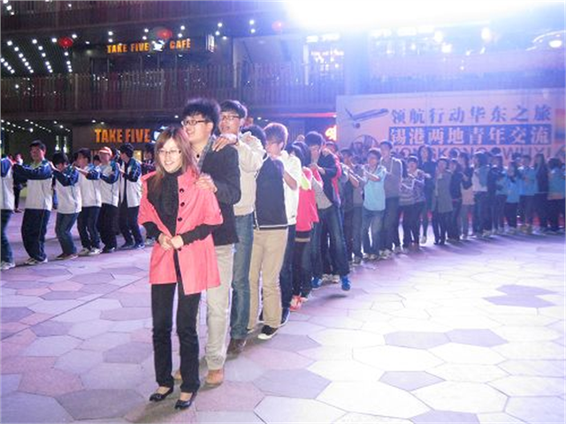 启动仪式上,我院学生与香港学生合影留念联欢晚会上,我院学生带领在场所有青年共跳兔子舞4月6日至8日,“领航行动——锡港两地青年交流活动”在无锡举行,我院13名学生参加了活动启动仪式、锡港两地青年联欢Party、“我眼中的无锡”交流会等一系列活动。