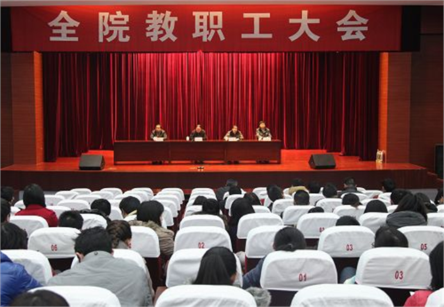 我院召开新学期教职工大会院党委书记高国强同志作2012年学院工作部署院党委副书记刘彬同志主持会议新春伊始,万象更新。3月2日下午,我院300余名教职工集聚一堂,召开新学期教职工大会。院党政领导高国强、刘彬、邹亚平、瞿立新出席大会。会议由党委副书记刘彬同志主持。