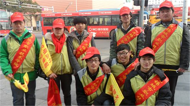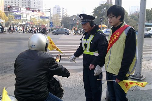 我院志愿者协助交警拦截违章行人参加交通协警服务活动的部分学生志愿者为营造安全、畅通、文明、和谐的道路交通环境, 2011年12月31日-2012年1月2日,无锡市文明办、无锡市崇安区交警支队与我院团委联合组织了元旦交通协警志愿服务活动。我院22名学生志愿者参加了位于无锡交通最拥堵、繁杂的八佰伴路段的协警服务活动。