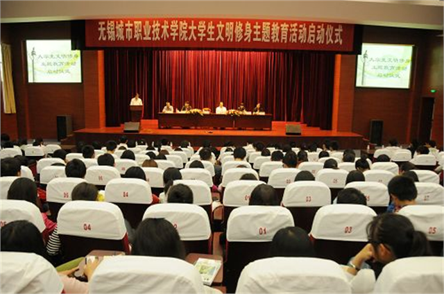 为进一步改善和优化校园的育人环境,切实引导广大青年学生增强学习动力,注重行为养成,提升综合素质,10月12日下午,我院大学生文明修身主题教育活动在图文信息中心报告厅正式启动。无锡市文明办副主任商明、市学校管理中心综合教育部主任季敏霞、无锡市文明办志愿者工作处副处长朱敏,院党委副书记刘彬以及各系部负责领导、师生代表共500余人参加了启动仪式,仪式由学生工作处处长苏兴华主持。 |