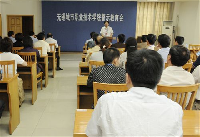 我院召开领导干部警示教育大会院领导及中层干部观看图片展为推动我院党风廉政建设和反腐败工作的深入开展,增强领导干部廉洁从政、拒腐防变的自律意识,筑牢抵御各种腐败行为的防线,6月15日下午,学院党委在无锡监狱召开了领导干部警示教育大会,院党委书记高国强,院长周伟灿、党委副书记、纪委书记刘彬以及中层以上干部共40人参加了会议。