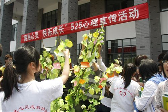 我院举办大学生心理健康宣传活动发放心理知识传单心理海报展览现场心理咨询为宣传大学生心理健康知识,营造积极向上的心理氛围,在全国大学生心理健康日当天(5月25日),我院学工处心灵成长辅导中心在食堂前举办了“5.25”大学生心理健康宣传活动。
