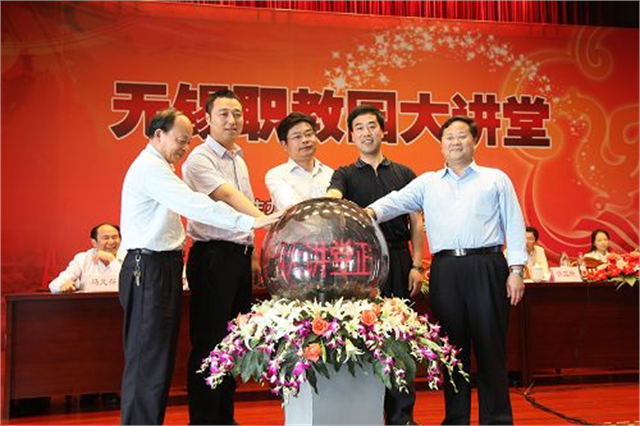 |  | | 与会领导共同触亮“无锡职教园大讲堂”LED启动球 |