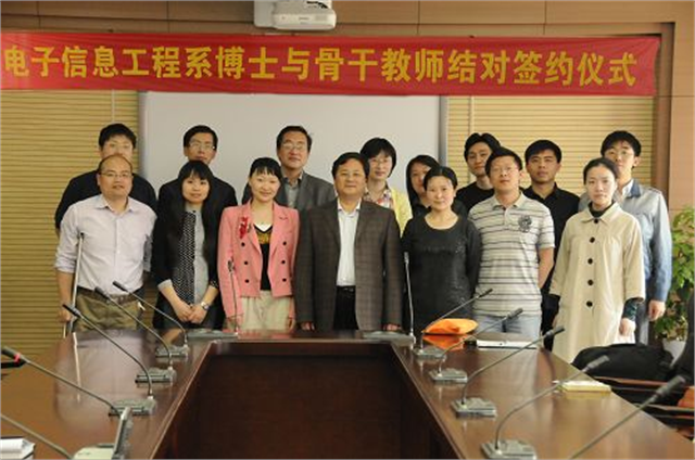 我院电信系举行博士与骨干教师“结对”签约仪式“结对”教师签约院长周伟灿作热情洋溢的讲话为认真学习贯彻《国家中长期教育改革和发展规划纲要》和《胡锦涛在庆祝清华大学建校100周年大会上的重要讲话》精神,大力加强教师队伍建设和学科专业建设,推动学院各项工作上新台阶,4月28日下午,电子信息工程系举行了博士与骨干教师“结对”签约仪式。仪式由电信系主任杨晓健主持,共有六位博士与系骨干教师签订了“结对”协议。院长周伟灿教授到会并作了热情洋溢的讲话。