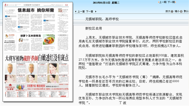 无锡城职院、高师学校新校区启用上周末,无锡城市职业技术学院、无锡高等师范学校新校区落成启用典礼在无锡城市职业技术学院隆重举行。此次,两所学校新校区的落成启用,将使进驻藕塘职教园的学校增加至8所,师生规模达8万余人。
