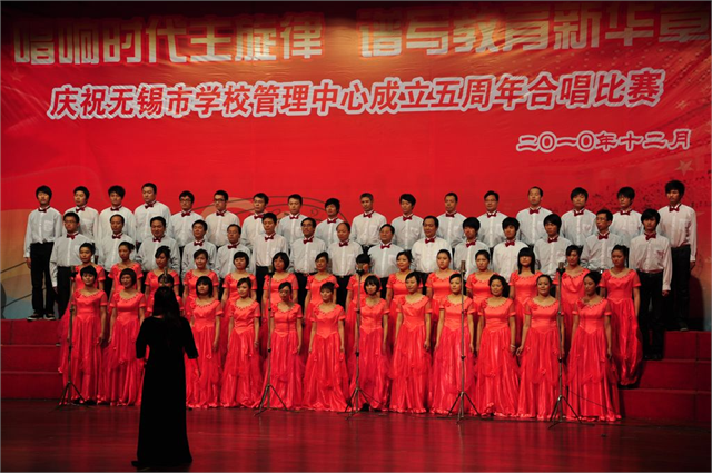 我院师生合唱团获无锡市学校管理中心成立五周年合唱比赛优秀演出奖12月18日下午,庆祝市学校管理中心成立五周年合唱比赛在梅村中学礼堂隆重举行。我院六十位师生同台演出,以一首《七律·长征》荣获优秀演出奖。