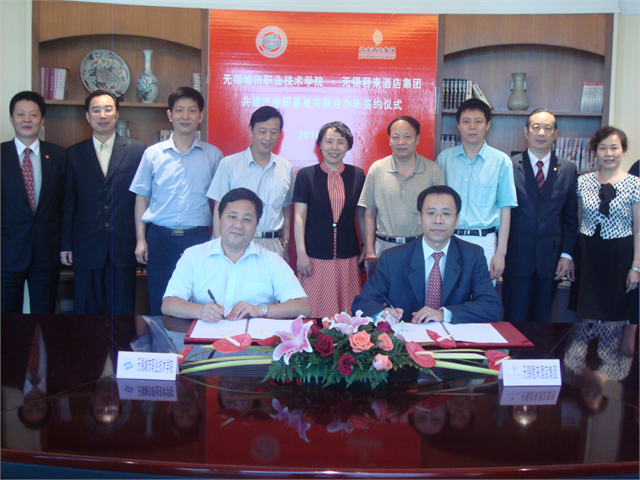 院长周伟灿与君来酒店集团总裁唐晓签署校企合作协议近日,我院与无锡君来酒店集团校企合作签约仪式在君来酒店隆重举行。市委组织部干部四处陆东处长、国资委沈宁宁副主任、我院党委书记高国强同志、院长周伟灿同志、副院长瞿立新同志、旅游系党总支副书记于丽华同志、招生就业处处长汪慧娟同志、君来酒店集团董事局主席、党委书记朱晓霞女士及总裁唐晓先生出席了签字仪式。