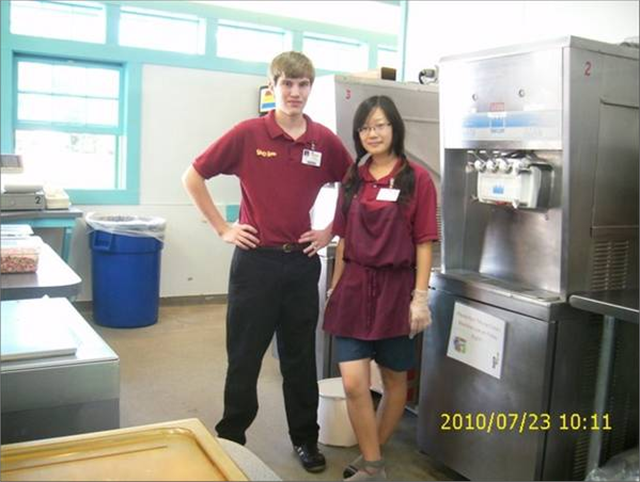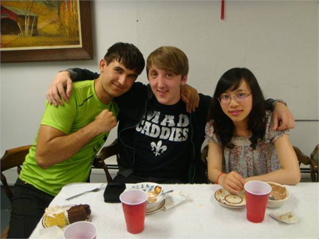 我院学生袁敏与国际学生一起用餐我院学生韩凤珍与国际学生相处融洽我院学生与公司同事合影作为我院与中国对外友好合作服务中心开始开展的中美教育及文化交流合作项目,我院旅游系袁敏等三位同学顺利通过测试,获得了美国Story Land和Boddie Noell Enterprises两企业的实践机会,并于今年暑期开始了他们的美国之行。