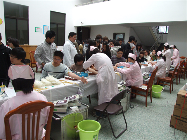 我院学生积极参加无偿献血活动4月22日下午,梅园校区大学生活动中心一楼大厅内暖意流流,我院青年学生无偿献血活动在此举行。来自各系的学生们积极踊跃地参与到这项公益事业中,通过无锡市中心血站,向全社会奉献出自己的一片爱心。活动中,共有120余名同学献出了自己宝贵的鲜血,他们用责任和爱心搭起了一座通往生命绿洲的桥梁。
