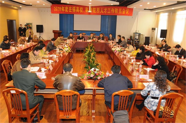 2010年度在锡高校、科研院所人才工作联席会议在我院召开3月19日下午,2010年度在锡高校、科研院所人才工作联席会议在我院学生活动中心三楼报告厅召开。市人才工作办公室成员单位的分管负责人和相关业务处室的同志,在锡高校、科研院所的组织人事(部)处长参加了会议。市委组织部副部长、市人才工作办公室主任沈伟明同志主持会议并作重要讲话。院党委书记高国强同志、院长沈毅烈同志、党委副书记、纪委书记刘彬同志看望了与会代表,副院长瞿立新同志、党委办公室主任吴东同志参加了会议。