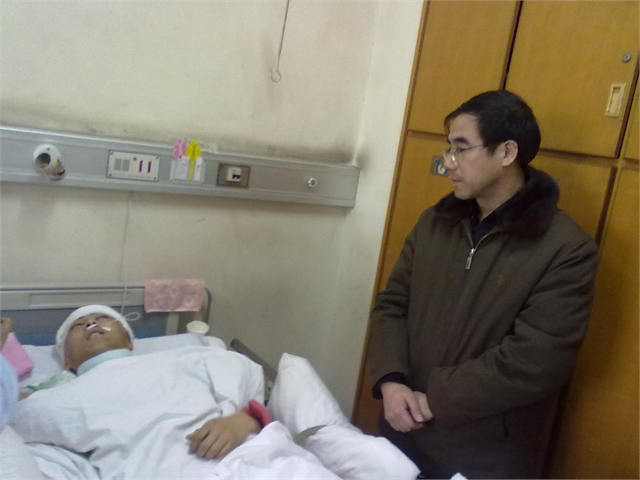 院党委副书记、纪委书记刘彬代表学校看望受伤的张成林同学刘书记为张成林同学捐款2月26日,我院建筑工程系07级建筑工程技术2班的张成林同学在宜兴不幸遭遇车祸,头部受重伤,被送往医院进行颅脑手术。张成林同学原本就家庭贫困,父亲于07年因车祸去世,母亲一直病卧在床。张成林的受伤使本来经济就不宽裕的家庭显得更加窘迫。