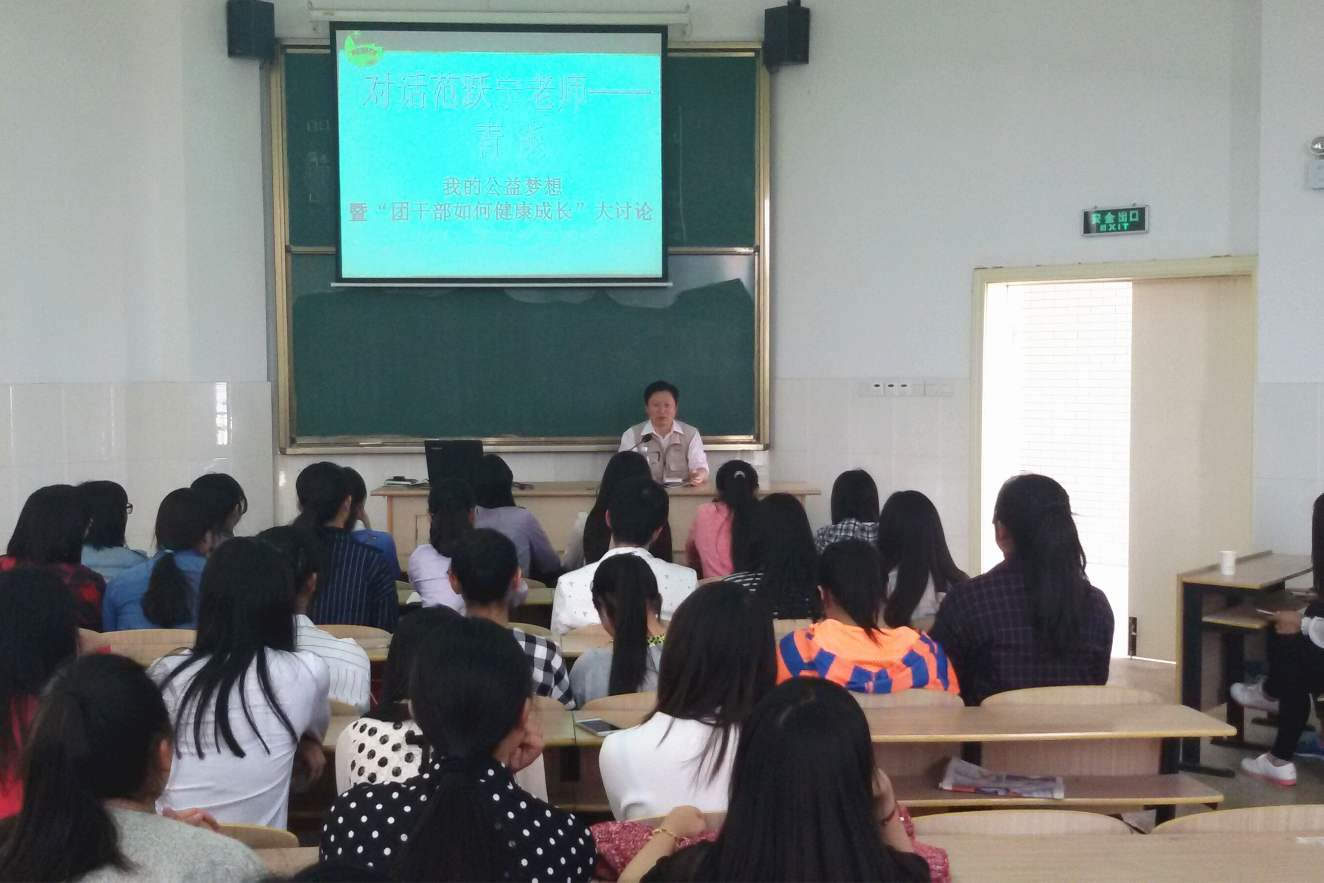 “从事慈善事业遇到最大的困难是什么”等问题与范跃宁老师互动交流。同学们表示作为新时代的青年,要用自己的实际行动向范跃宁学习,将志愿服务、奉献爱心化为自觉践行社会主义核心价值观的行为和生活方式,传播正能量。